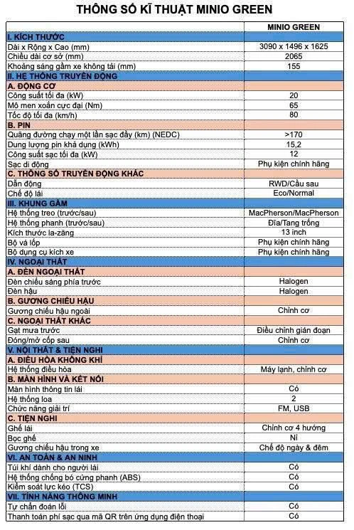 Phiên bản và giá xe: Minio Green