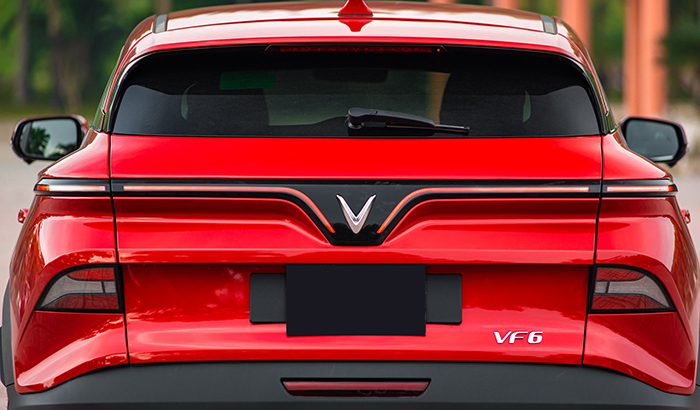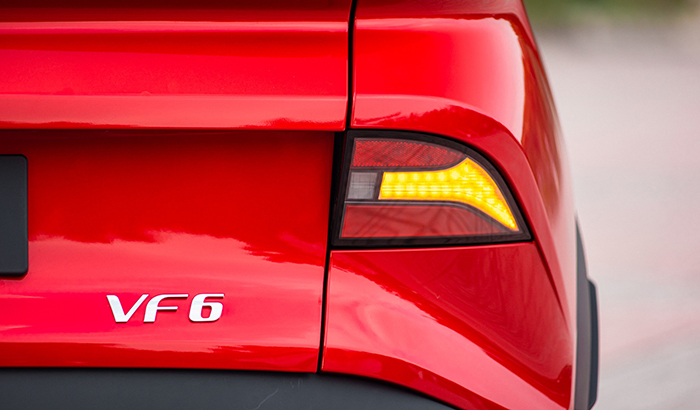 Ở mẫu xe điện VinFast VF6 trang bị cánh gió thể thao, ăng ten vây cá mập.