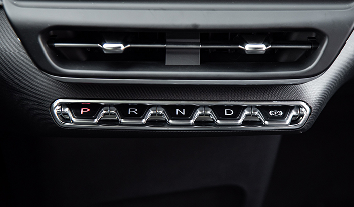 Cần số dạng nút bấm và phanh tay điện tử được đặt bên dưới màn hình đa thông tin